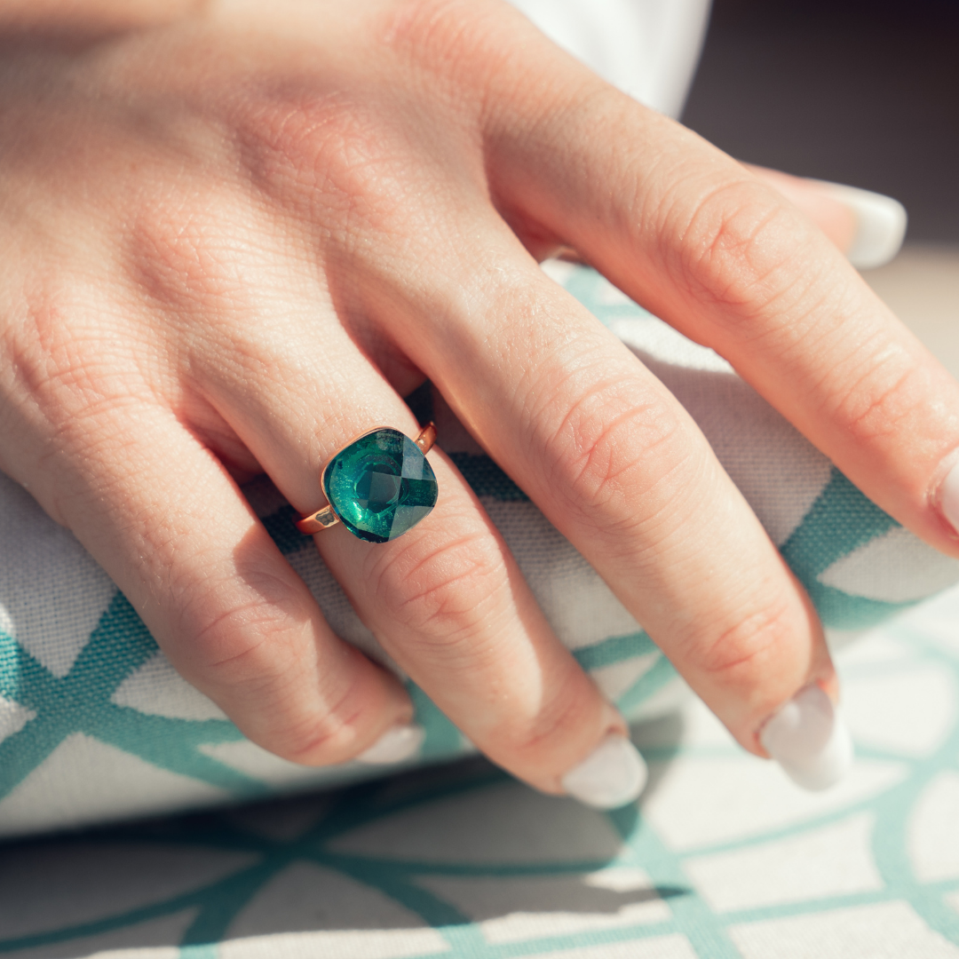L'Anello Madame cattura qualsiasi sguardo con la sua eleganza senza tempo. La forma e la lucentezza della pietra smussata lo rendono un gioiello che incanta per la sua semplicità.