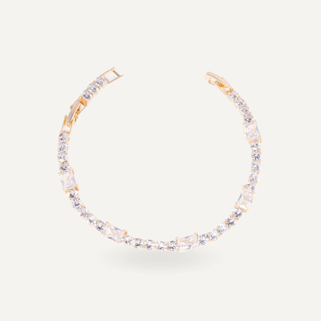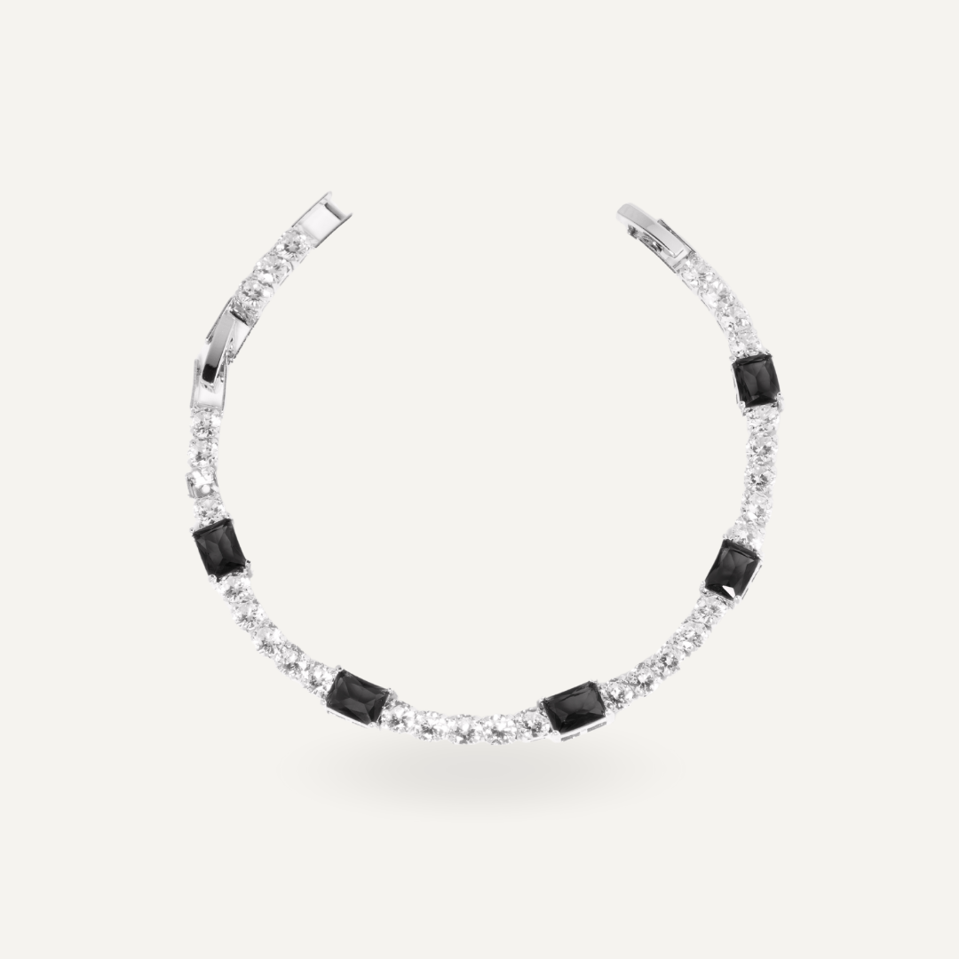 Il Bracciale Marilyn in acciaio è un tennis brillante con pietre colorate alternate. Questo tennis evoca un senso di eleganza e raffinatezza. Un must-have che ti renderà più affascinante in ogni occasione.