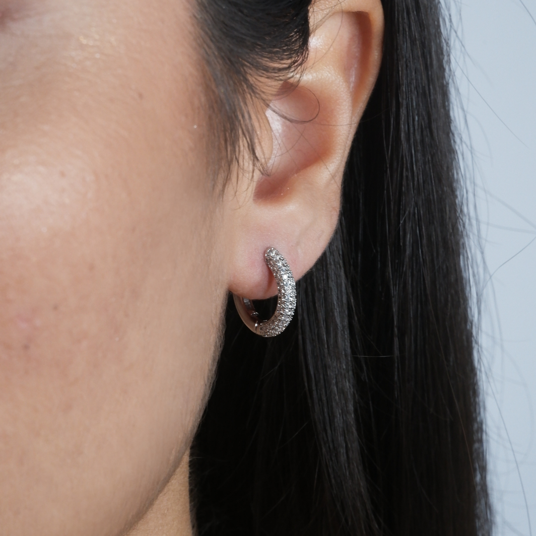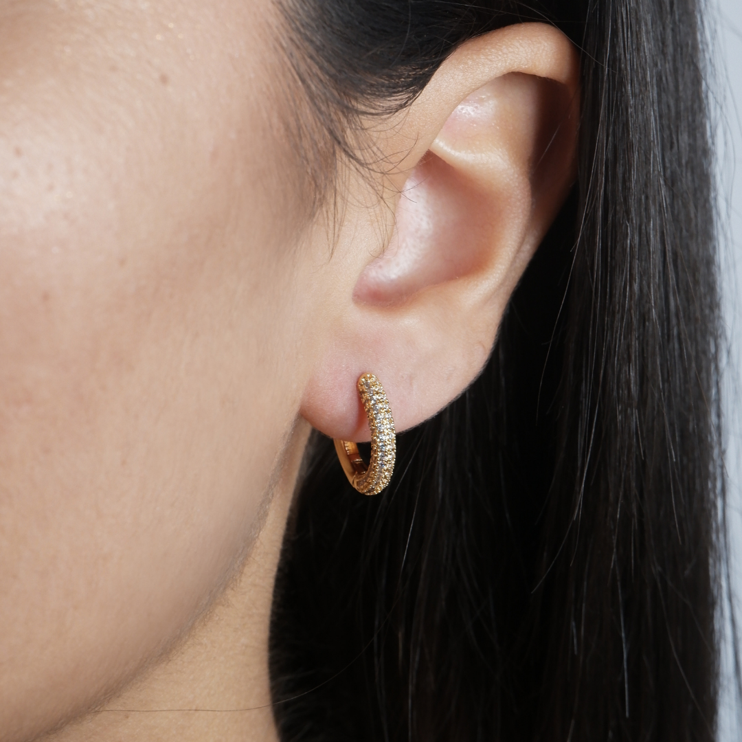 Gli Orecchini Cerchietti Baby Pavé realizzati in ottone sono un vero e proprio capolavoro versatile, capaci di adattarsi ad ogni tipo di serata.