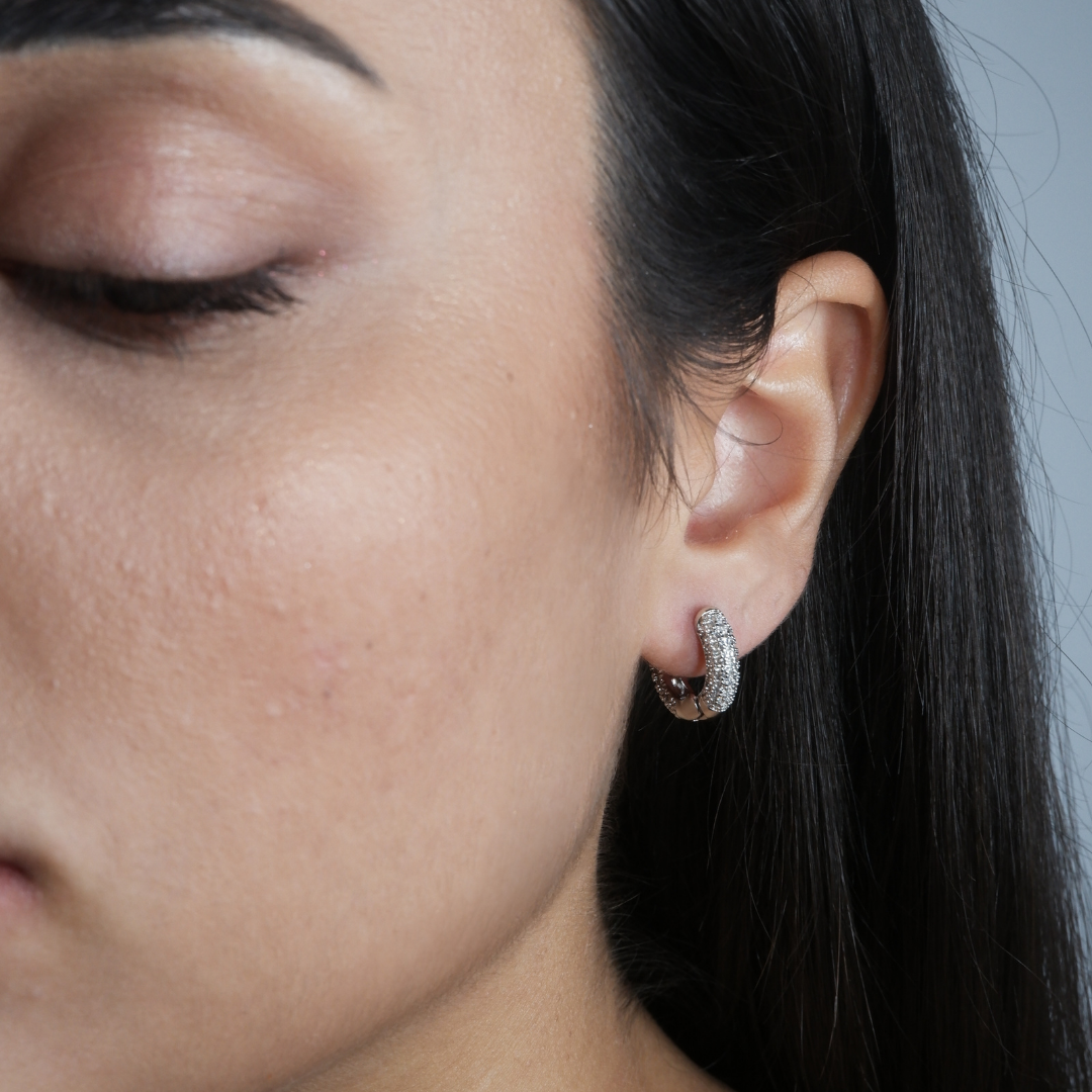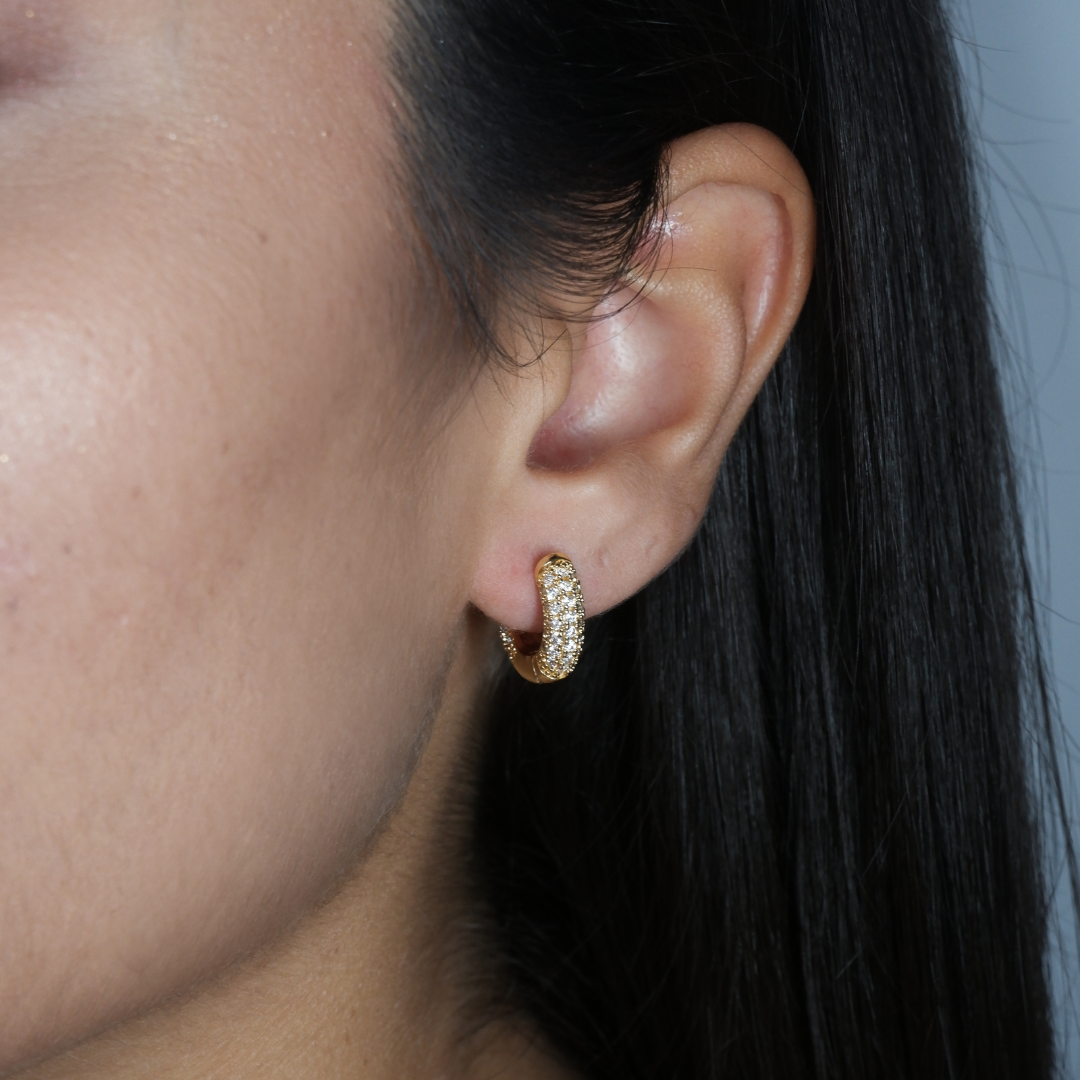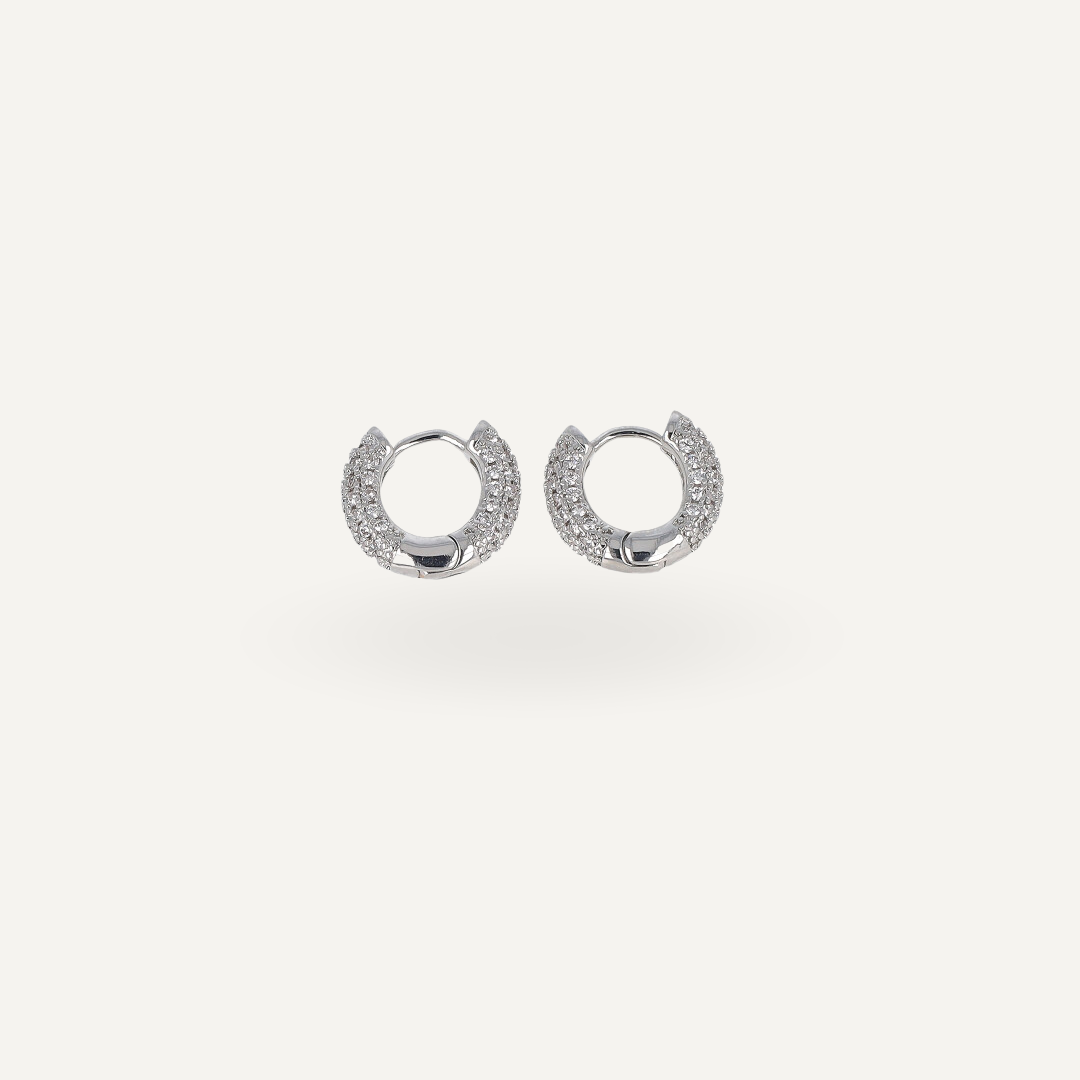 Gli Orecchini Cerchietti Pavé in ottone sono una dichiarazione di stile senza tempo. I dettagli finemente lavorati conferiscono un tocco di eleganza e femminilità, mentre la loro leggerezza assicura un comfort duraturo.