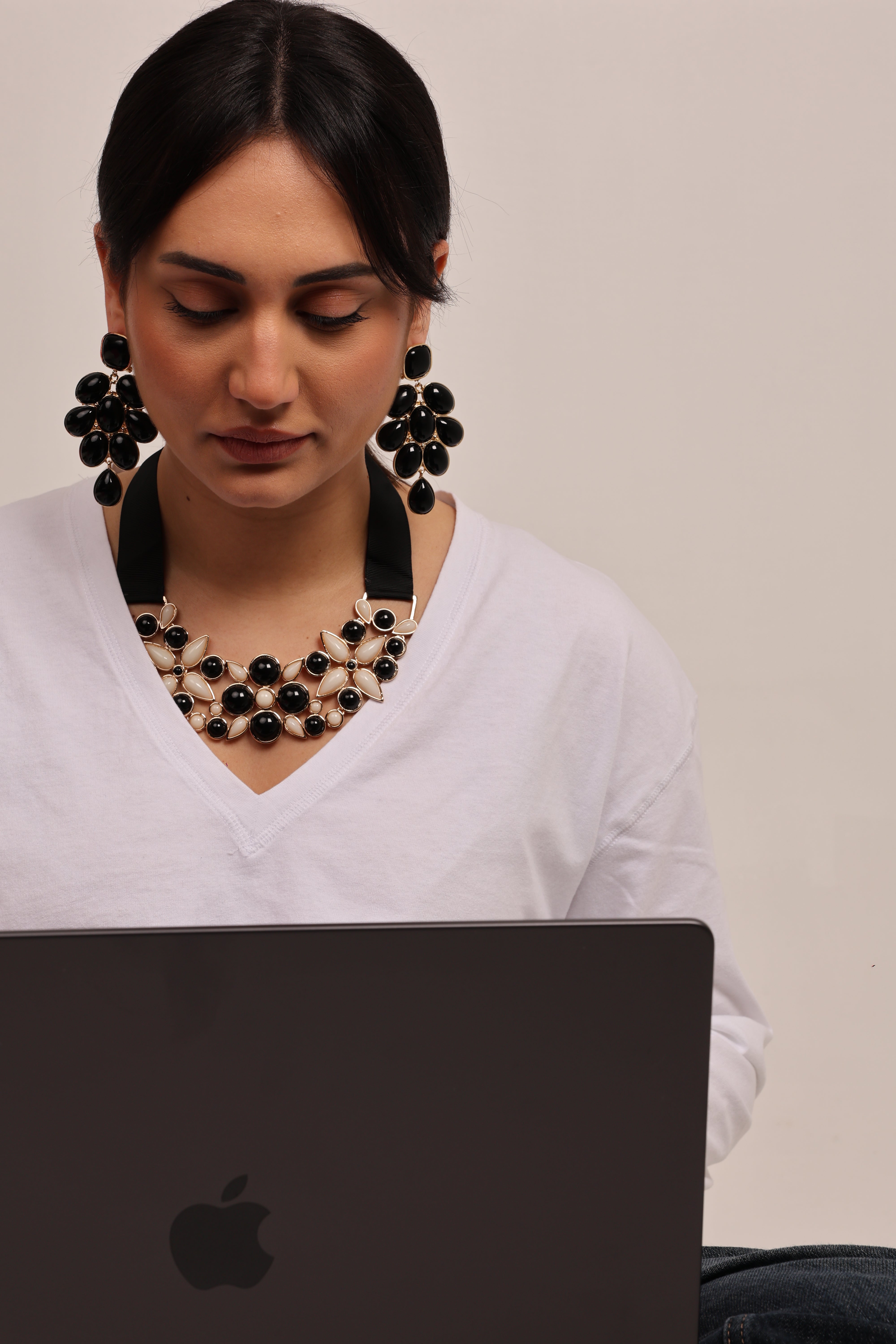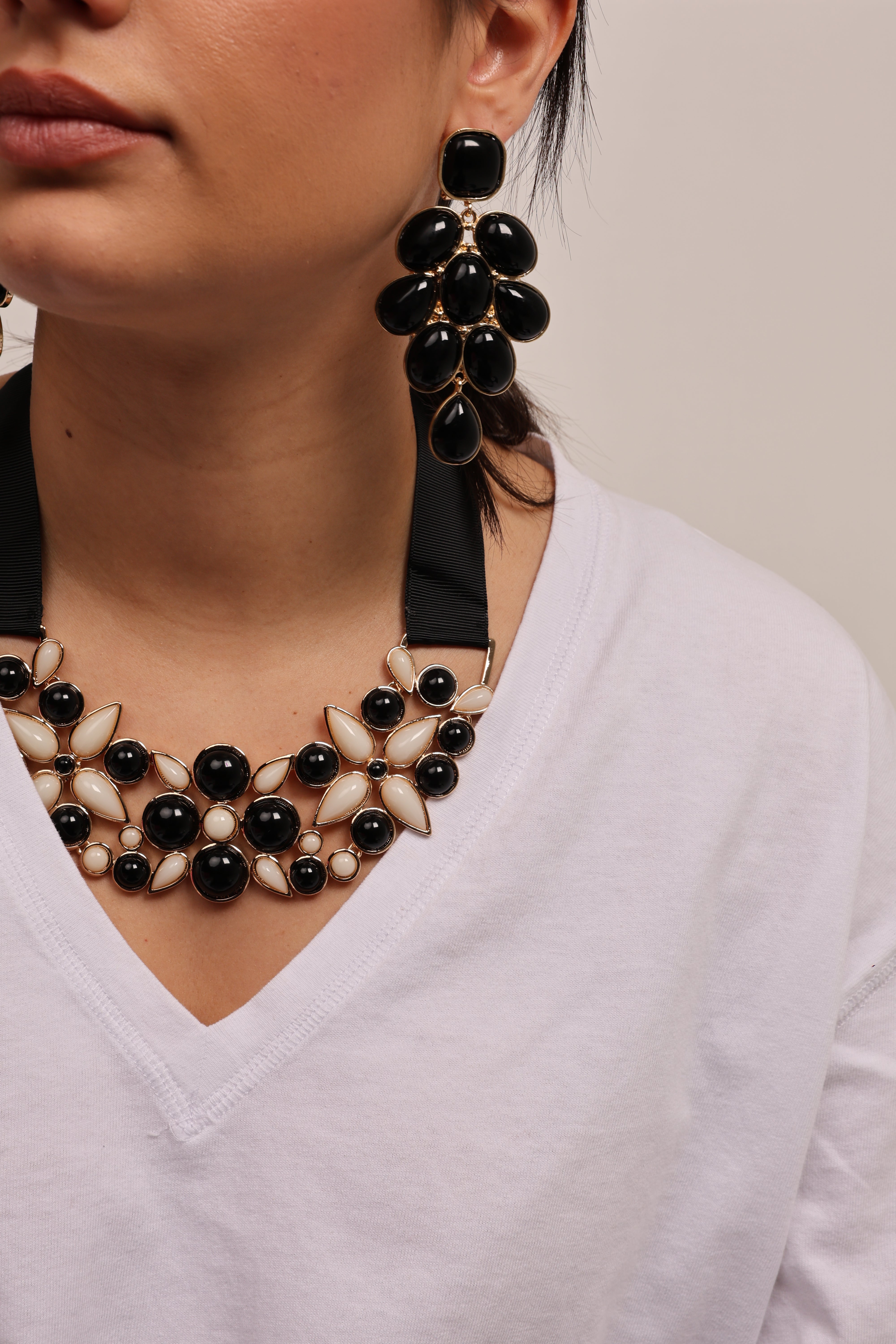 Collarino Gros Grain Perla in cotono, acrilico e vetro