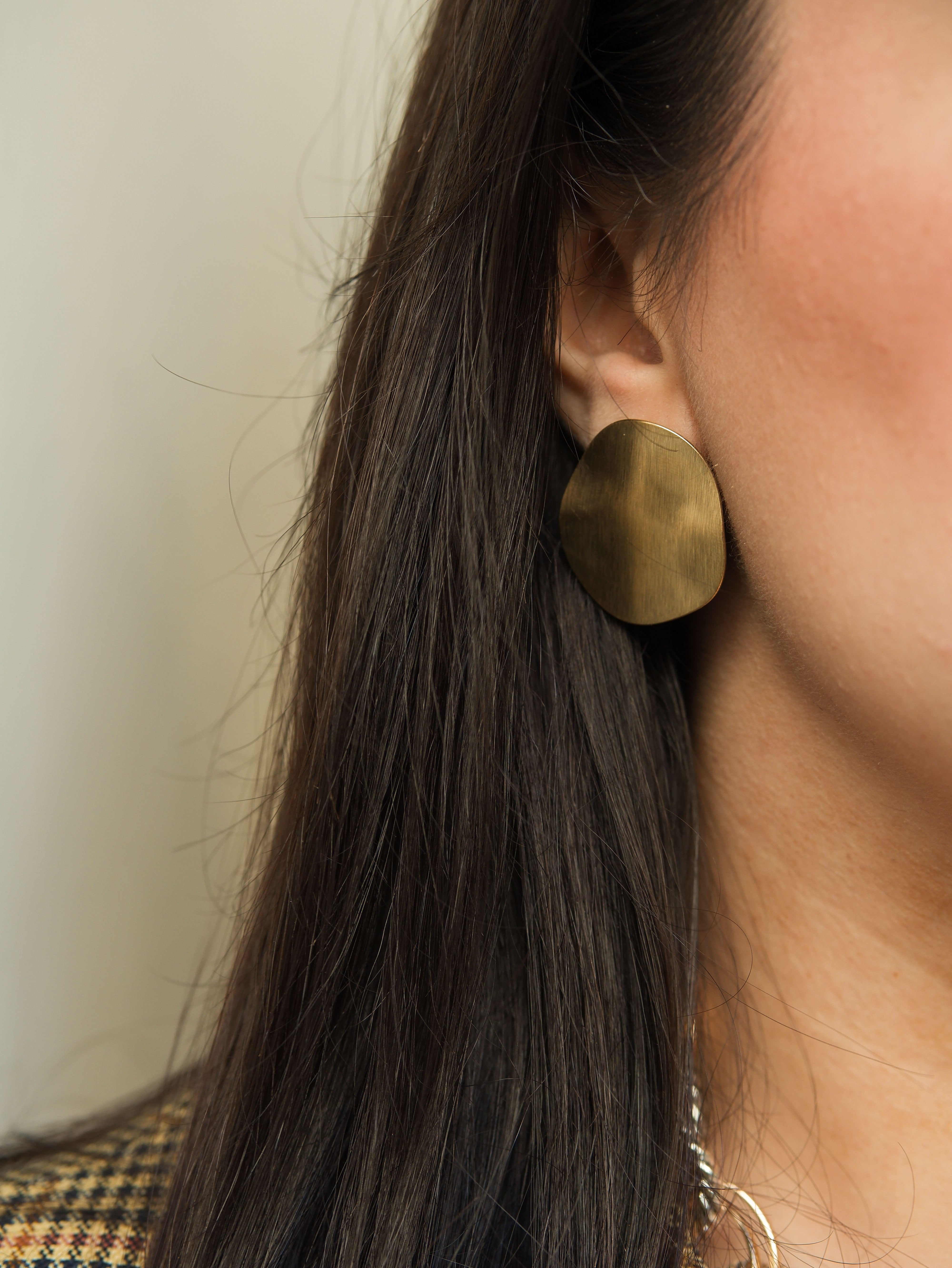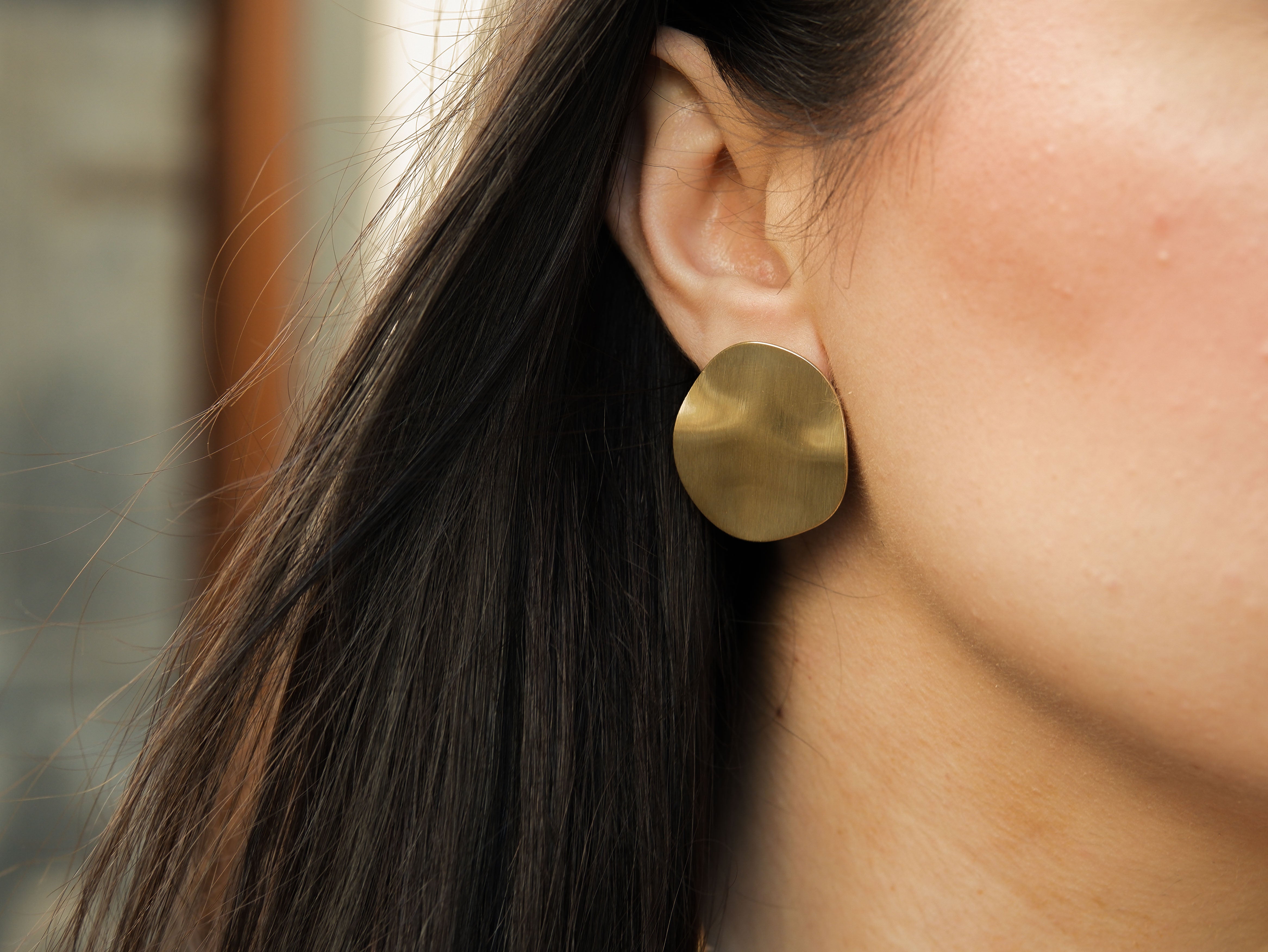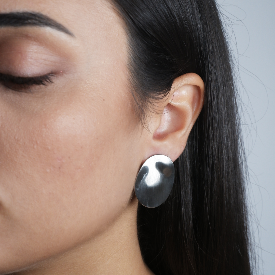 Gli Orecchini Cheope Small sono la versione più compatta e discreta del modello Cheope, pensati per chi ama uno stile minimal ma sempre curato. La loro forma rotonda leggermente irregolare, unita alla finitura satinata, crea un elegante effetto opaco che riflette la luce in modo morbido e sofisticato.